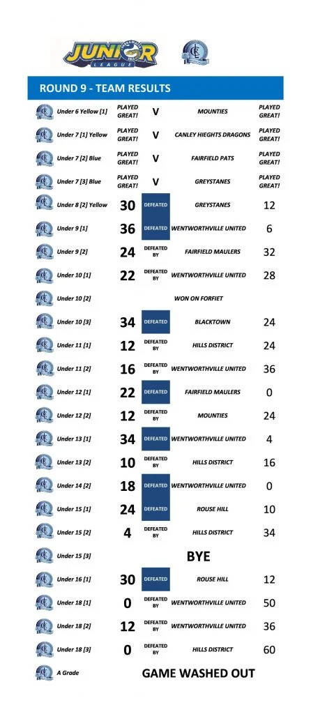 WEEKLY PDJRL RESULTS 2019 ROUND 9